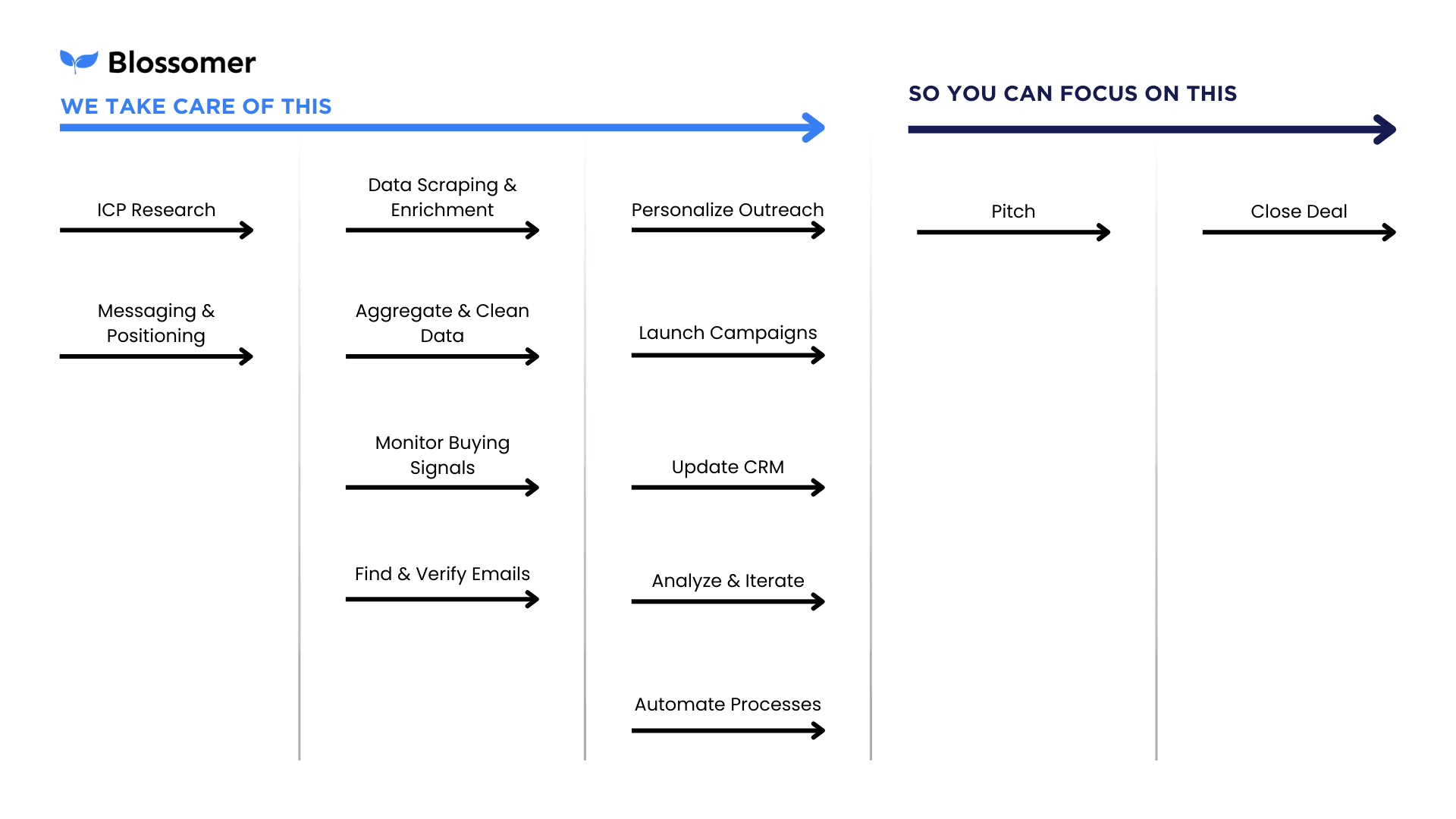 Working with Blossomer has been invaluable for us as technical founders getting our sales motion off the ground. They provide a wealth of startup sales and marketing knowledge to the table and have been critical in bringing structure to our GTM efforts.